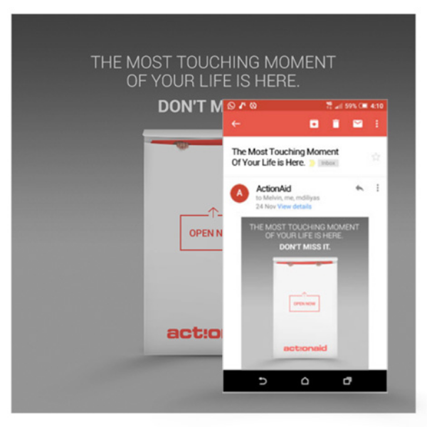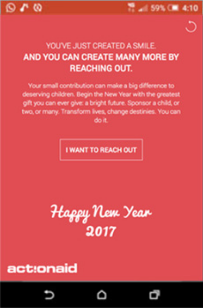 Created a season’s E-greeting card for ActionAid that could be sent to a select database on the occasion of Christmas and New Year. While the objective of the E-card is NOT to hard sell ActionAid, it aims at bringing the recipients closer to the brand through a fascinatingly interactive idea.