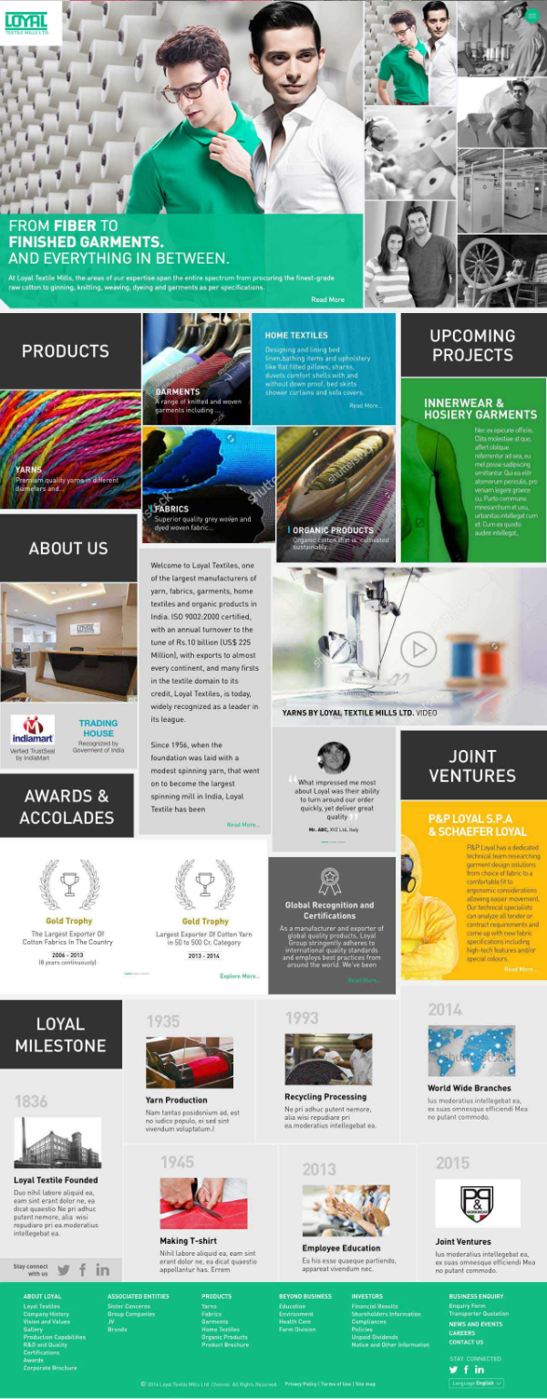 Loyal Textiles is one of the largest manufacturers of yarn, fabrics, garments and textile products in India. From modest beginnings in 1956 as a spinning and weaving mill, Loyal Textiles has evolved with the times to occupy a leadership position today.
