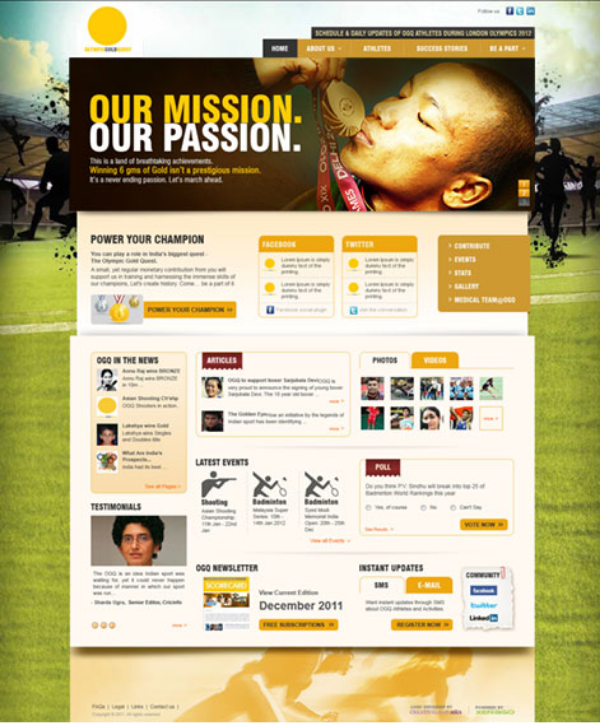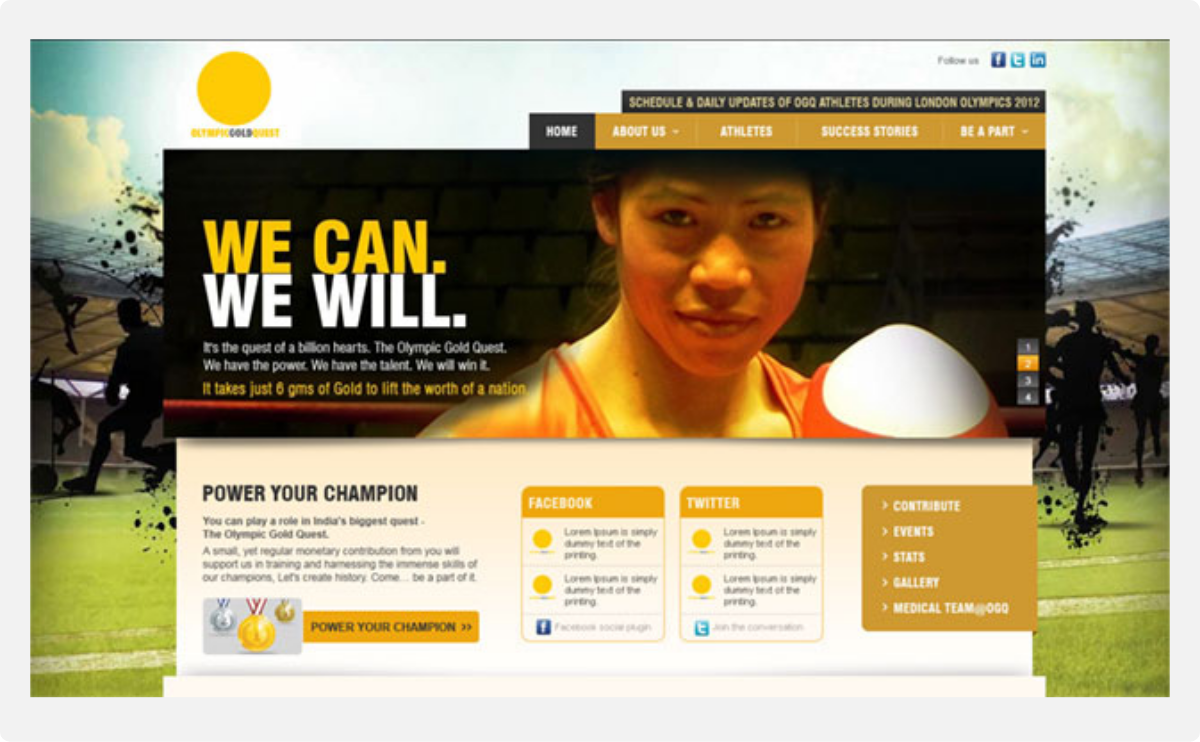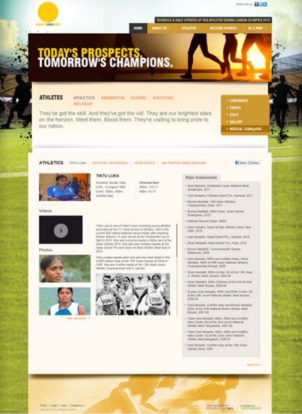 The Business Goal is to encourage Indians to contribute towards the cause, reach out to Indians to make OGQ a national movement and ensure sports icons become a household name, build brand OGQ and speak knowledge about the brand activities