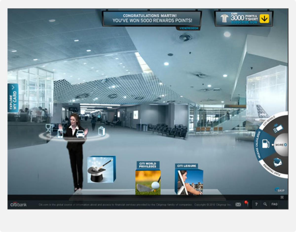 Citi management team felt the overall leather package and the USB when inserted to the system and the concierge appeared on wide screen with a warm welcome message, the whole interactive animation sequence was played to Citi management and product owners. Presentation was felt very interesting and and the entire creative approach was greatly valued and felt confident that it'll provide premium experience to new PremierMiles credit card customers. It was decided to proceed next course of actions to execute the same in full scale for Singapore market followed by other APAC countries but due to change in management and cost factor approvals for developing markets, Citi felt it is too early to launch hence it was on hold.